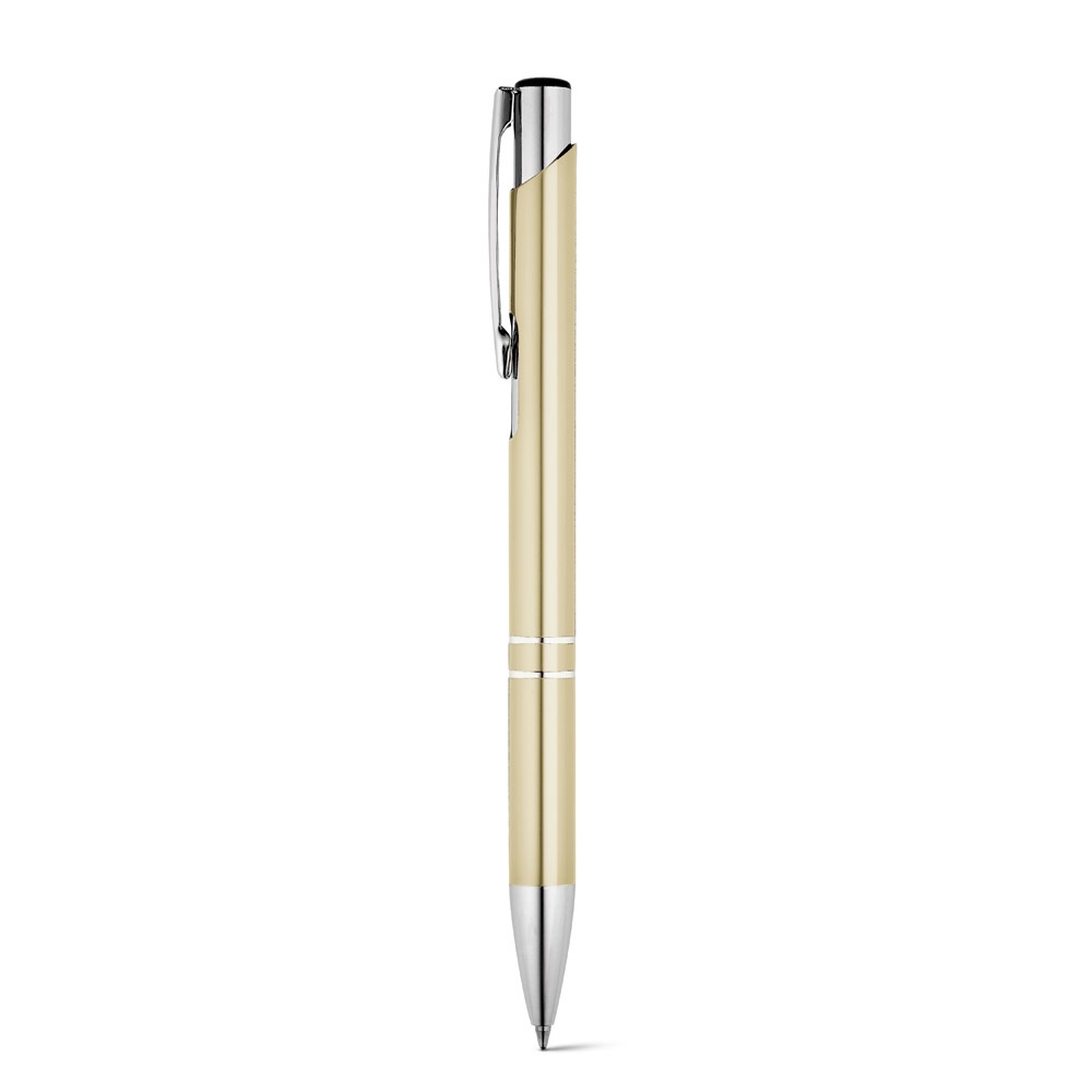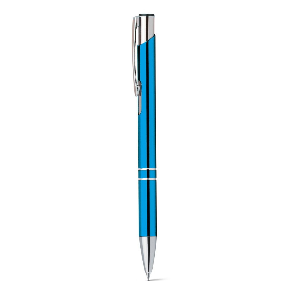 Esferográfica em alumínio com clipe e acabamento metalizado. Disponível numa variada gama de cores. Escrita a azul. ø10 x 137 mm
