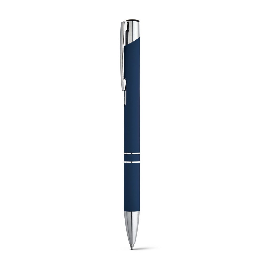 Esferográfica em alumínio com corpo colorido e acabamento em borracha. Disponível numa variada gama de cores. Escrita a preto. ø10 x 137 mm