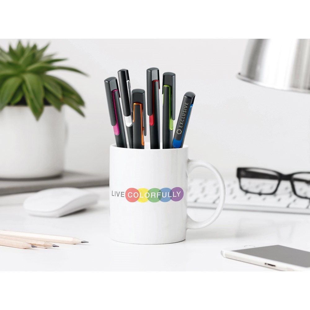 Esferográfica com acabamento metalizado. Disponível numa variada gama de cores. Escrita a preto. ø10 x 138 mm