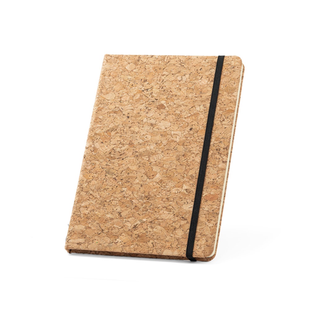 Conjunto de bloco de notas A5 e esferográfica em cortiça. Bloco com 192 páginas pautadas cor de marfim, em papel proveniente de gestão florestal sustentável. Esferográfica de escrita a azul. Fornecido em caixa de oferta em papel kraft. Por ser um produto composto por materiais naturais, a cor do produto e o resultado da impressão podem variar entre produtos. 140 x 210 mm
