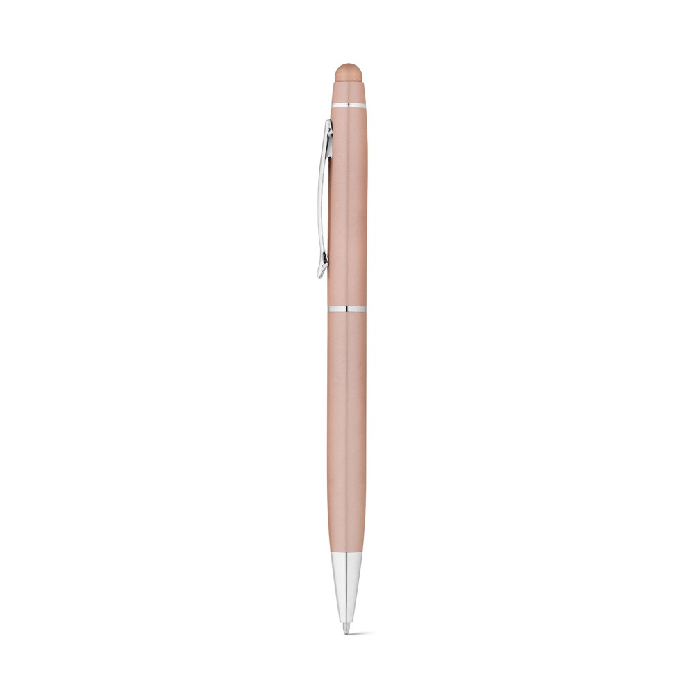 Esferográfica em metal com ponteira touch. Disponível em elegantes cores. Escrita a azul. Fornecida com estojo de oferta desmontado. ø10 x 141 mm | Estojo: 150 x 15 x 19 mm