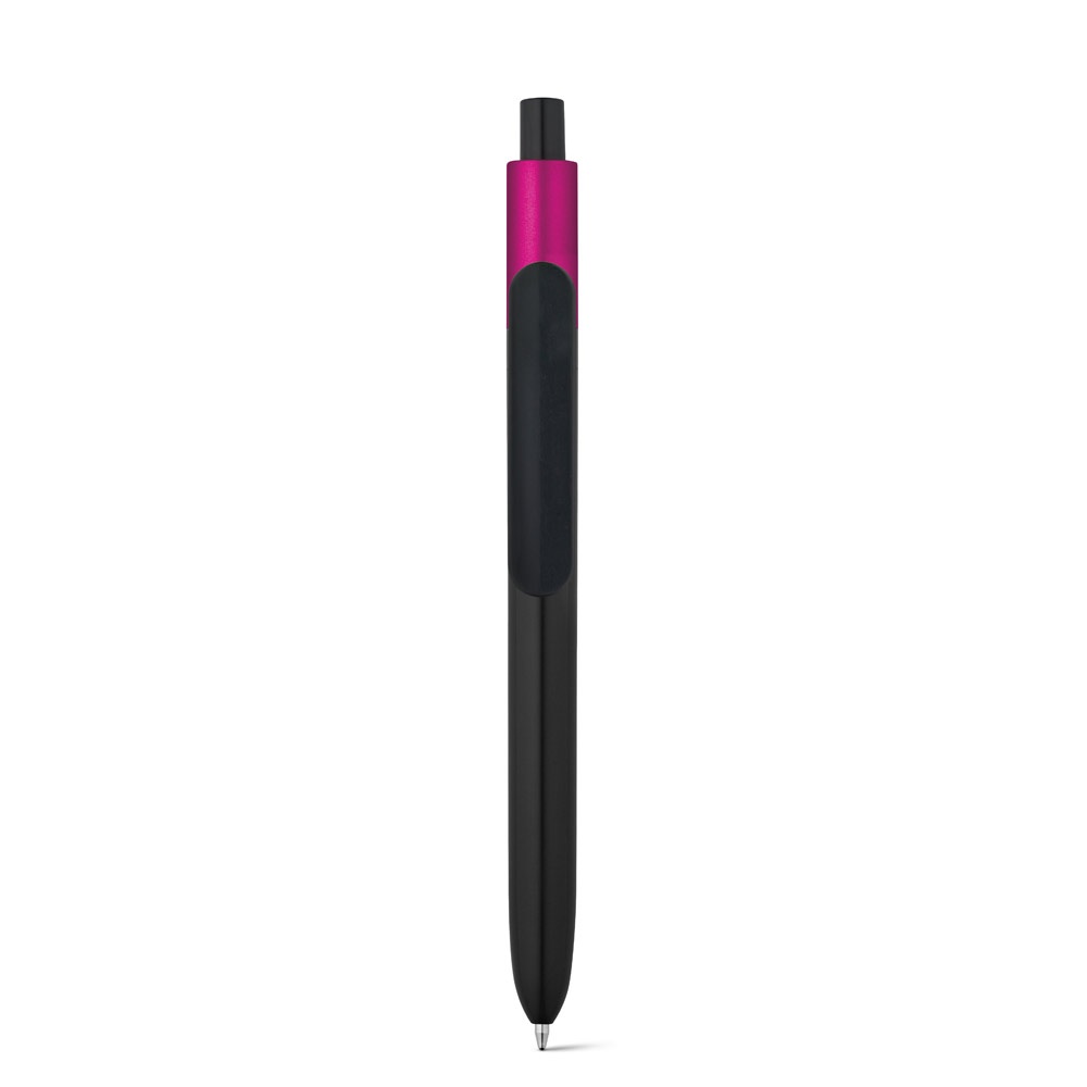 Esferográfica em ABS com acabamento brilhante e topo lacado com acabamento metalizado. Inclui recarga X20 em tinta azul. Disponível em várias cores metalizadas. ø11 x 139 mm ø11 x 139 mm