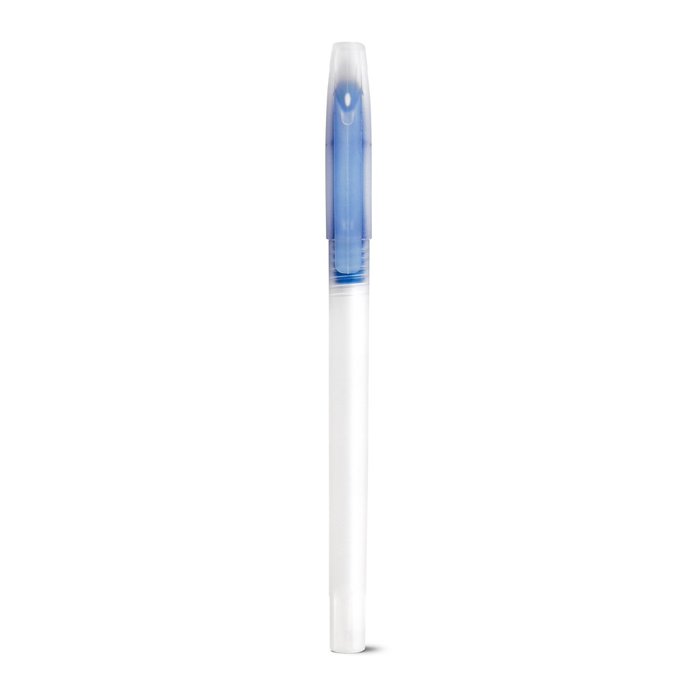 Esferográfica em PP com ponta colorida e tampa transparente. Escrita a azul. ø10 x 142 mm
