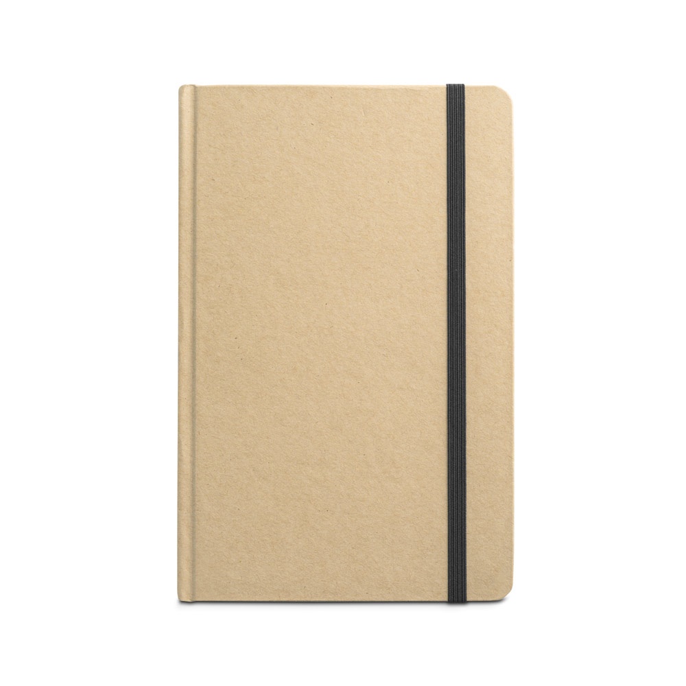Bloco de notas A5 com 160 páginas pautadas e capa rígida em cartão. Contém elástico e fita separadora na mesma cor. 137 x 210 mm