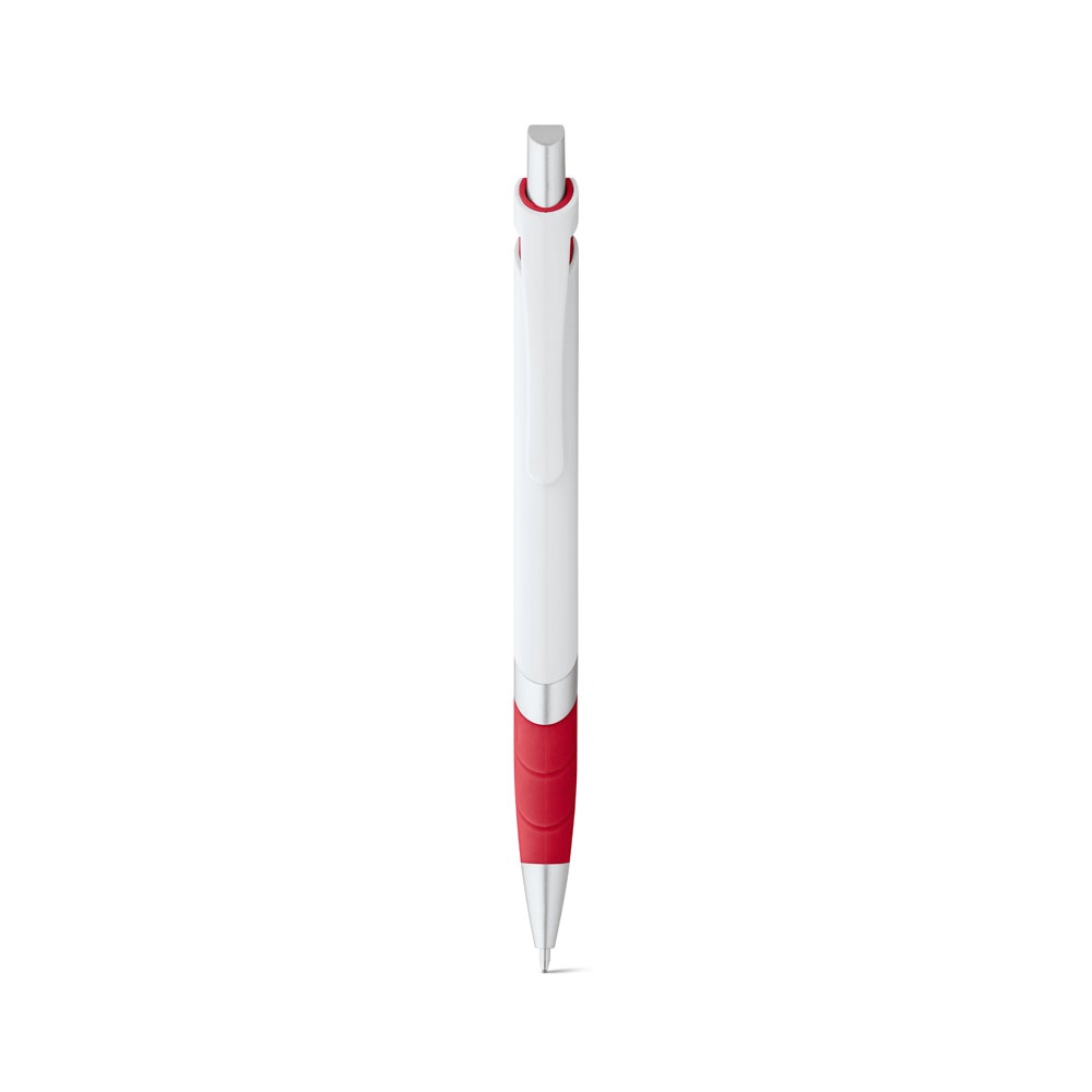 Esferográfica em ABS com antideslizante colorido e clipe. Escrita a azul. ø13 x 140 mm